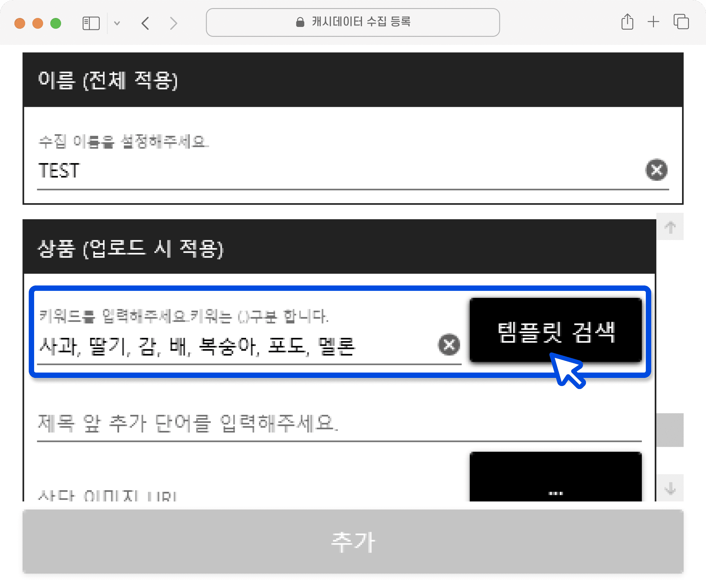 검색 태그를 제공하는 마켓에 넣을키워드를 미리 템플릿으로 생성하는기능