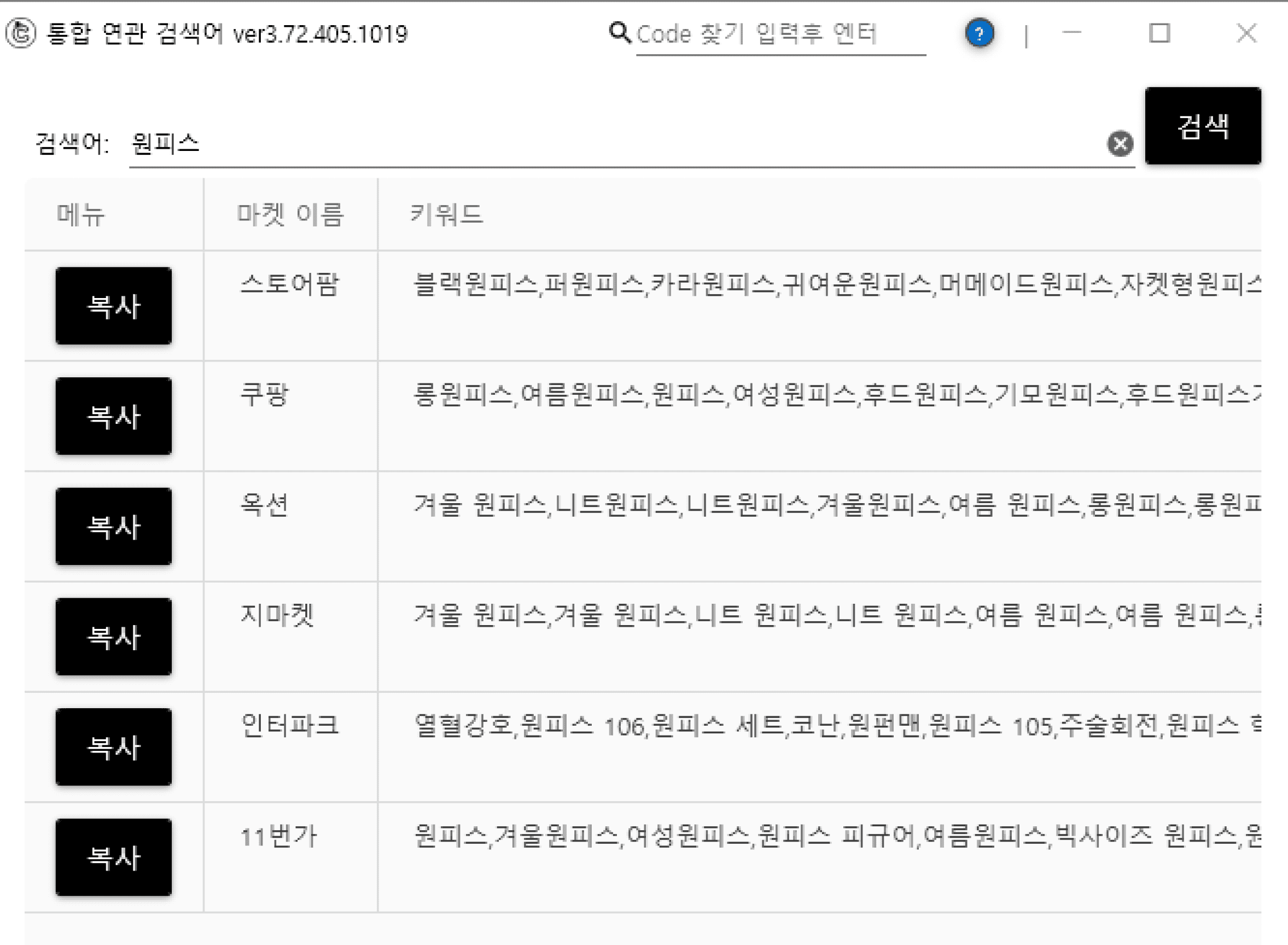 지원하는 마켓에 연관 검색어를자동으로 가져오는 기능