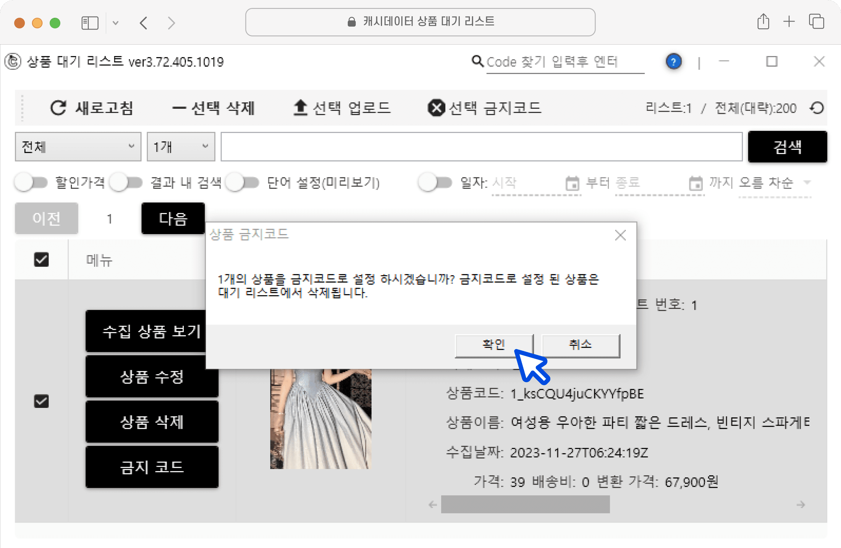 수집을 원하지 않는 특정 상품 번호 또는상품 코드를 등록하여 해당 상품은 다시수집하지 않는 기능