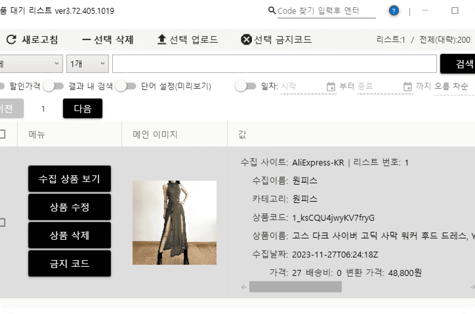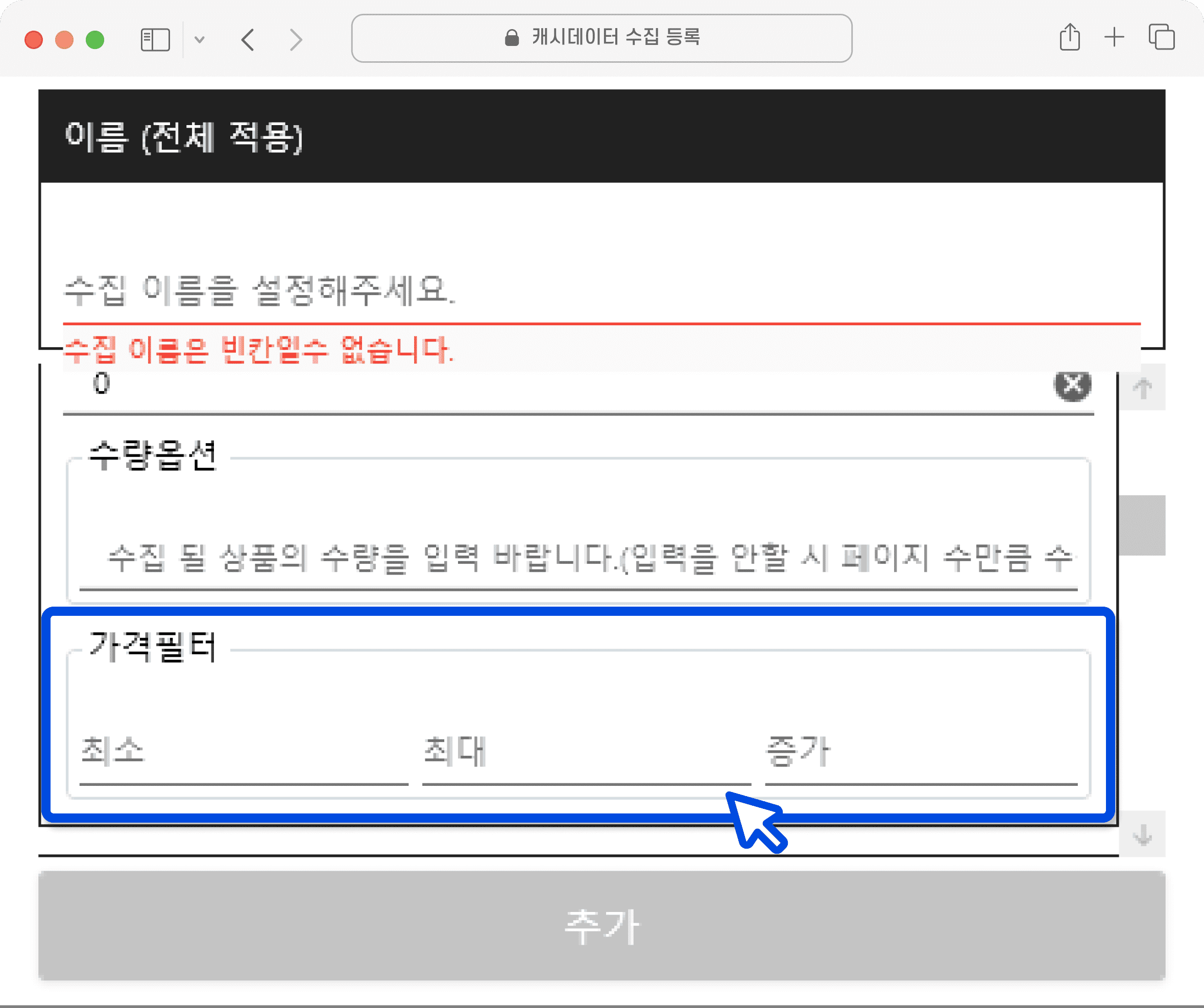 수집 리스트 1개 내에서 설정한가격대의 알리익스프레스 상품을전부 수집할 수 있는 기능